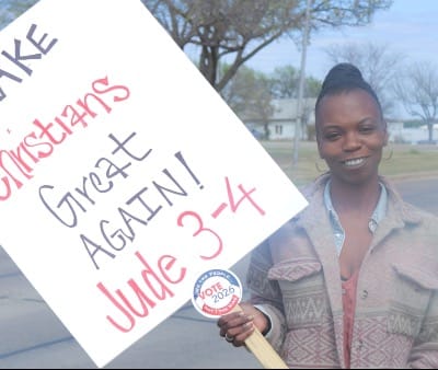 LaShaila Gates is a Christian who was at Shepler Park participating in the rally. Gates stood at the edge of the park near the road with a sign stating ‘Make Christians Great Again’. According to Gates, Christianity has been used as a tool to push certain political agendas.