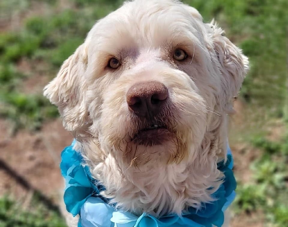 Pecos is a three year old PyraDoodle, meaning he’s standard poodle size. Shelter staff say he arrived at Wilbarger Humane Society shelter in Vernon, Texas, as a stray with his brother. They say he has a good temperament and will do well with or without a canine sibling. However, he has not been tested with cats or kids. That said, the shelter expressed that they’d be willing to let him do a meet and greet for interested adopters with children. Given he thick, curly coat Pecos will require being groomed regularly.